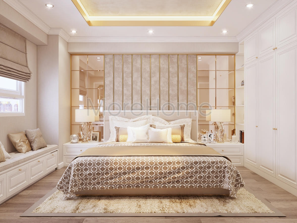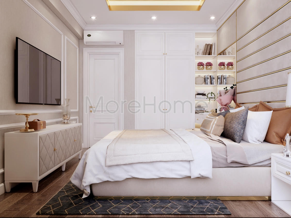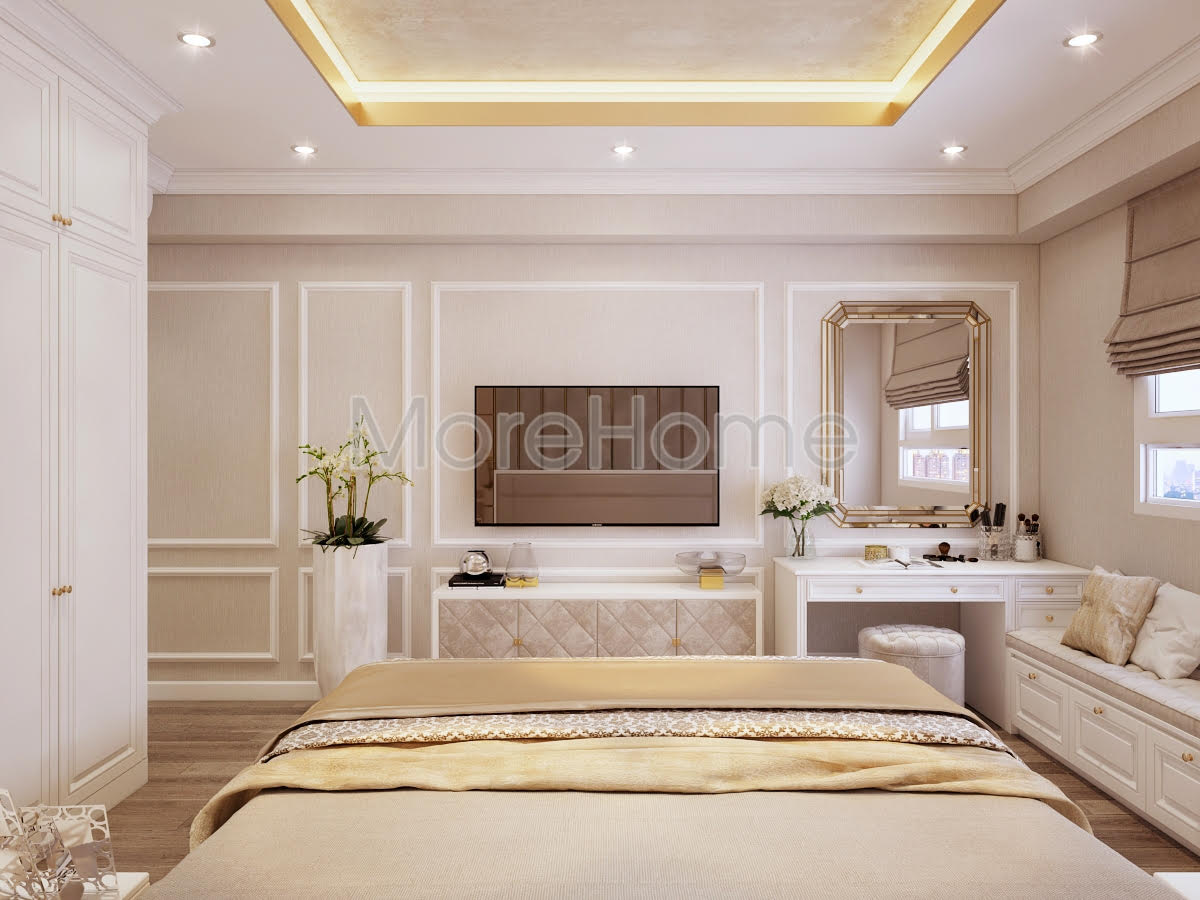Bạn đang được chiêm ngưỡng mẫu thiết kế nội thất chung cư tân cổ điển do KTS Morehome thực hiện. Đứng trước vẻ đẹp lộng lẫy của căn hộ chung cư 1050 quận Bình Thạnh Tp HCM bạn bị cuốn hút bởi màu sắc và đồ nội thất của căn hộ này.