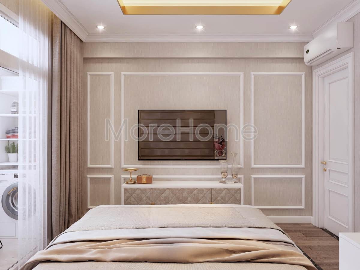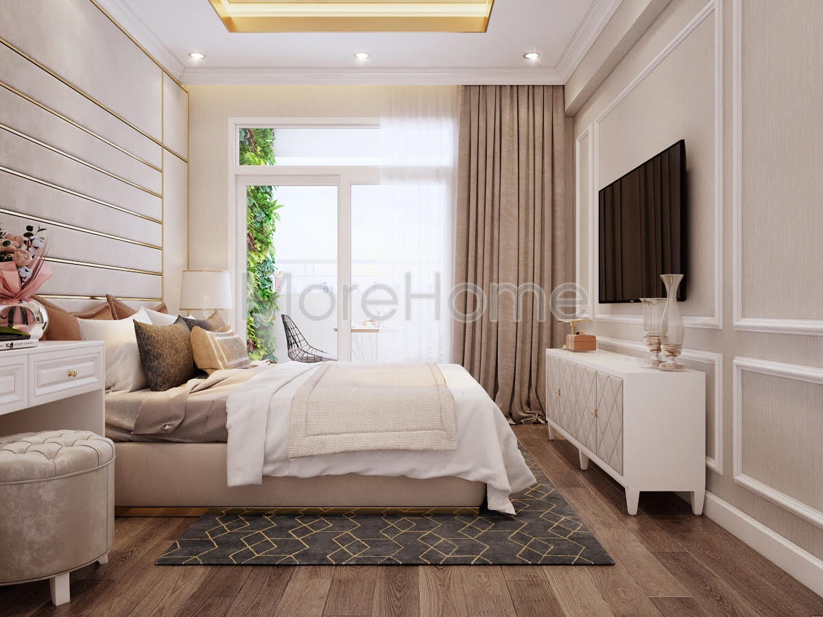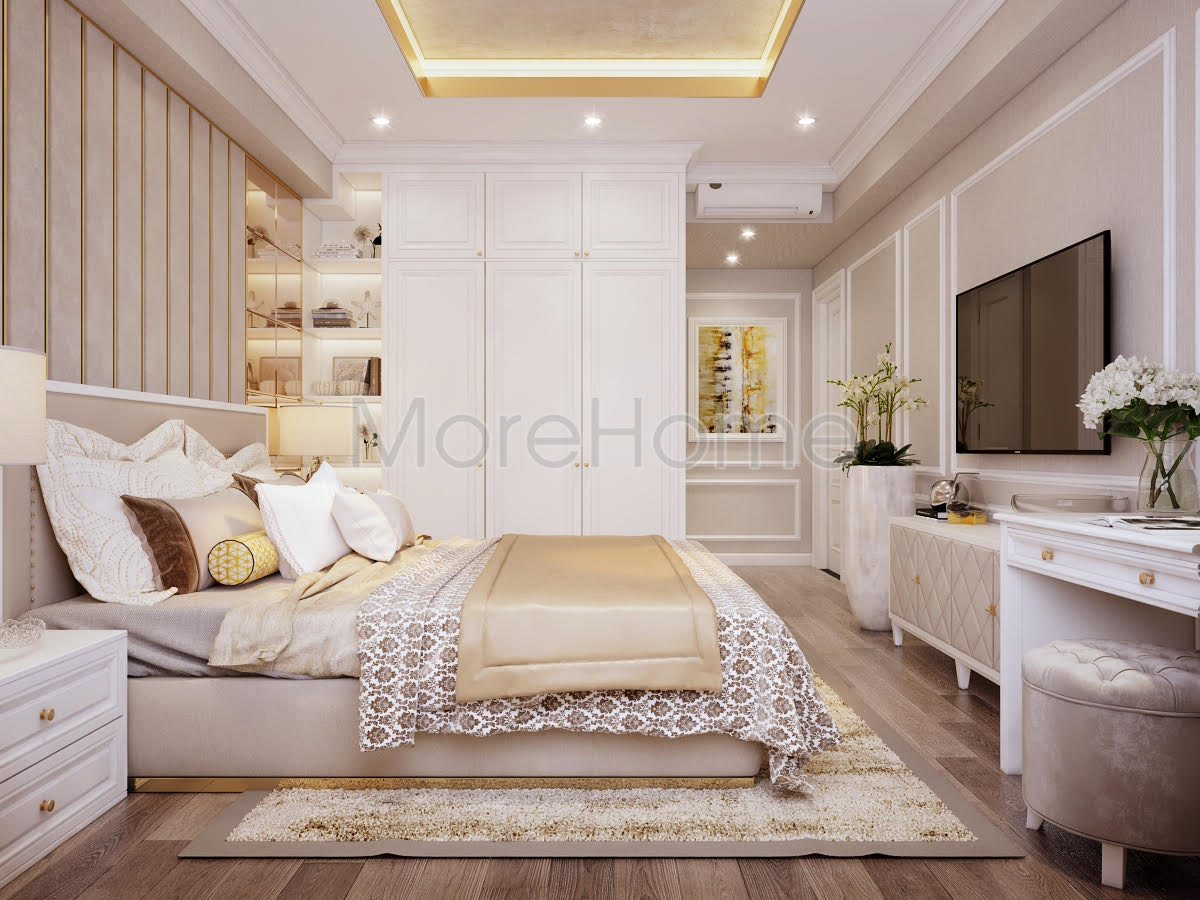 Bạn đang được chiêm ngưỡng mẫu thiết kế nội thất chung cư tân cổ điển do KTS Morehome thực hiện. Đứng trước vẻ đẹp lộng lẫy của căn hộ chung cư 1050 quận Bình Thạnh Tp HCM bạn bị cuốn hút bởi màu sắc và đồ nội thất của căn hộ này.