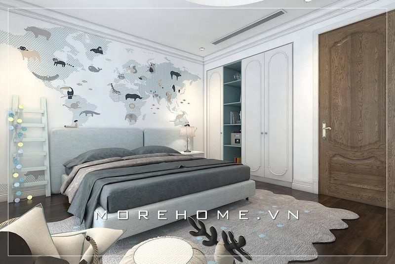 Gợi ý đến bạn mẫu giường ngủ trẻ em gỗ công nghiệp bọc vải xám tinh tế, sang trọng