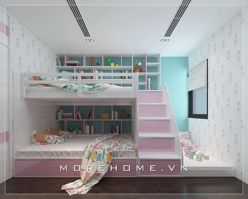 Ý tưởng thiết kế nội thất phòng ngủ hiện đại phù hợp với căn hộ có hai con bé sinh đôi.