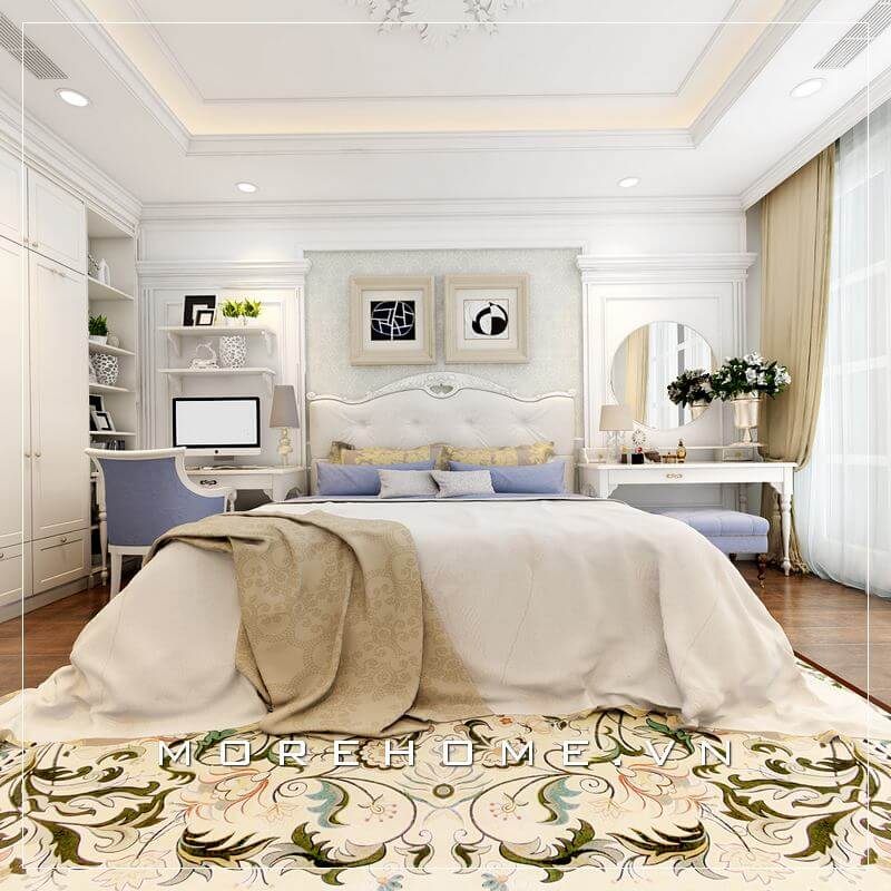 Thiết kế nội thất phòng ngủ cho bé đẹp mắt, có sự kết hợp tinh tế giữa bố trí đồ đạc gọn gàng và khoa học, kiểu dáng tâ cổ điển sang trọng và ấn tượng.