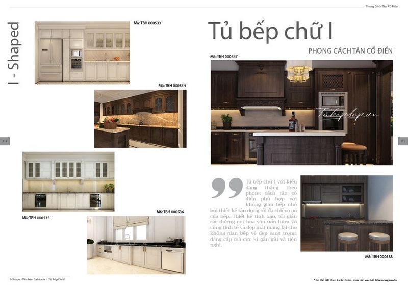 Các mẫu tủ bếp chữ i tân cổ điển là sự lựa chọn hoàn hảo cho các căn hộ chung cư, biệt thự, nhà phố với sự sang trọng cực đại.